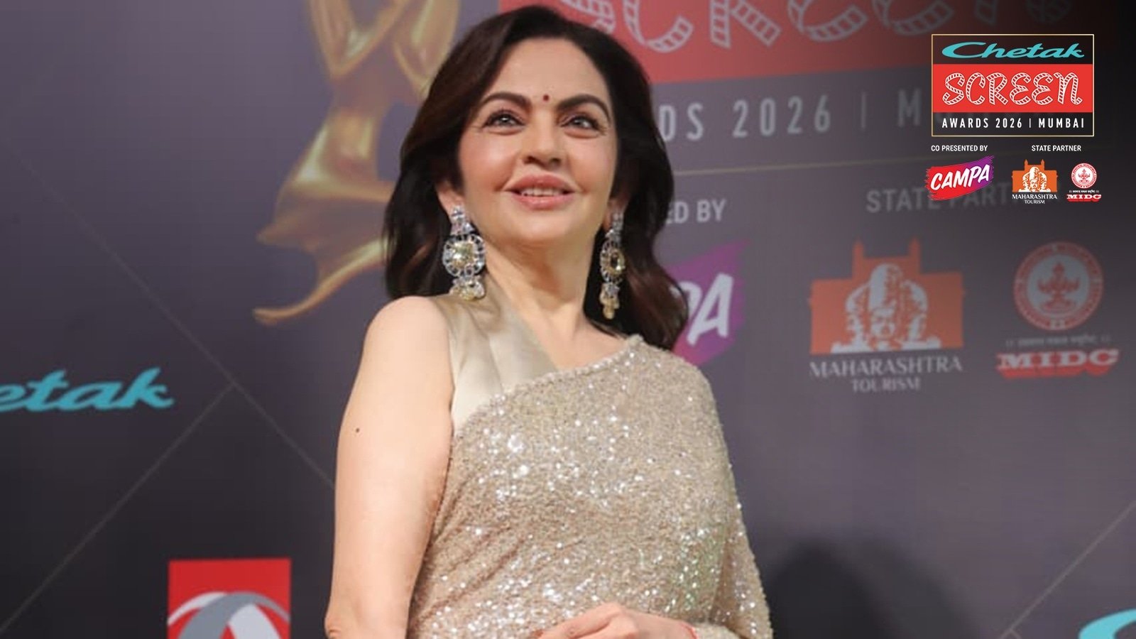 ​Nita Ambani at the Chetak Screen Awards. (Express Photo by Narendra Vaskar). Last evening, Nita Ambani graced the Chetak Screen Awards 2026 in a champagne gold ‘Akashtara’ sari from designer Sabyasachi Mukherjee’s atelier — a glittery piece borrowed from her daughter Isha Ambani’s wardrobe. Isha had worn the creation for Armaan Jain and Anissa Malhotra’s wedding in 2020, pairing it with a choker. Nita kept it simple with a sleeveless golden blouse, letting her accessories do the talking.. For the star-studded event, Nita accessorized with heavy diamond and yellow sapphire earrings, a matching bracelet, and a statement ring. However, the true showstopper was the Patek Philippe Nautilus Haute Joaillerie on her left wrist—a masterpiece retailing for a staggering $428,450 (approximately ₹3.72 crore). Missed the red carpet? Catch the highlights here.. What makes it so special?. According to the brand’s official website, the Nautilus Haute Joaillerie by Patek Philippe is presented in a rose gold model, entirely paved with diamonds in a sophisticated ‘snow-setting’ across the case, bezel, and bracelet. The dial features rows of stones meticulously arranged to mirror the signature wave relief of the Nautilus women’s collection. At its heart, the Caliber 26-330 S self-winding movement beats at a frequency of 4 Hz, ensuring unwavering accuracy. With a 45-hour power reserve, it remains a steadfast and reliable companion for the discerning wearer. Ambani flaunts the Chanel pearl bag. (Express Photo by Narendra Vaskar). The case, a luxurious 35.2 mm of rose gold, is a masterpiece of craftsmanship. Its slim profile, just 8.65 mm thick, sits gracefully on the wrist, exuding sophistication. The sapphire crystal caseback offers a glimpse into the intricate dance of its 181 parts, a mesmerising view for those who appreciate the inner workings of fine timepieces.. But it’s the diamonds that truly steal the show. A breathtaking 456 diamonds, totaling 2.25 carats, adorn the case, while the dial is a sparkling sea of 283 diamonds, adding another 1.07 carats of brilliance. This diamond-paved dial, crafted from 18K gold, is a canvas of opulence, with gold-applied hour markers standing proudly amidst the glittering backdrop. The rose gold strap, seamlessly integrated with a diamond-set Nautilus fold-over clasp, completes this exquisite ensemble. The luxury timepiece is also water resistant at 30 metres per 100 feet.. View this post on Instagram. ICYMI, watch the Chetak Screen Awards here:. Chanel bag. Don’t miss out on Nita Ambani’s arm candy as well. Nita flaunted the Pearl Ring Minaudiere from the Chanel Fall-Winter 2025/26 collection last night while posing on the red carpet. The minaudière featured an oversized ring with a luminous white sphere, blurring the line between jewellery and accessory. In the current market, the bag is priced above Rs 15 lakh, and is available upon request.