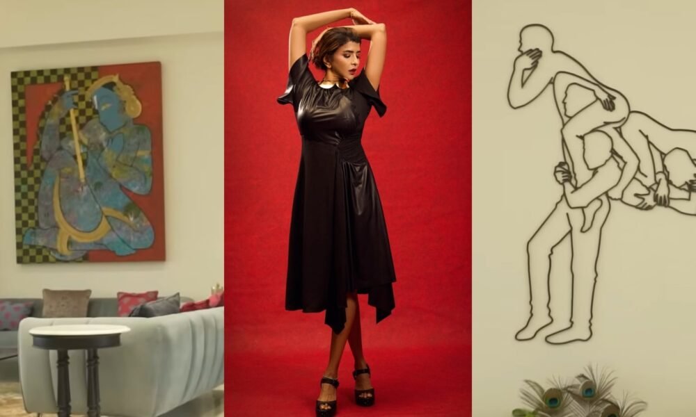 Lakshmi Manchu gives a tour of her Mumbai residence, highlighting interiors inspired by art, spiritual touches, 300 plants, and meticulously crafted living areas (Image source: Nayandeep Rakshit/YouTube, @lakshmimanchu/Instagram). Lakshmi Manchu, an actor and TV host, recently shared peeks into her stylishly crafted Mumbai residence with fans on social media. Renowned in Telugu cinema and as the daughter of veteran actor Mohan Babu, Lakshmi’s home elegantly mirrors her personal and spiritual path. ARTICLE CONTINUES BELOW VIDEO. [invoegd materiaal]. The apartment, featuring a private elevator, opens into a space rich with thoughtful details. Every nook of the home, with its rustic furnishings and beige walls, is Instagram-perfect, highlighting a stunning blend of art and spirituality. The space also includes artwork inspired by Krishna and a Lord Ganesha idol at the entrance. When art meets culture. The house’s standout feature is a large painting created by Lakshmi herself, mounted on an accent wall.