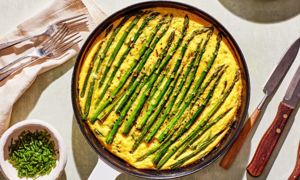 Skip to main content. Recipes. Like asparagus pulao, porky asparagus soba, charred stalks with harissa vinaigrette, and more ways to cook asparagus right now.. By Zoe Denenberg and Bon Appétit Staff & Contributors. March 29, 2026. Photograph by Emma Fishman, food styling by Susan Ottaviano, prop styling by Sophie Strangio. Don’t let spring pass you by without making at least one of these asparagus recipes. From a showy frittata to simple roasted asparagus, these dishes range from weeknight-friendly to dinner-party-ready—many of them can go both ways.. Asparagus cooks quickly and adapts to just about anything—grilled, roasted, steamed, or shaved raw into salads. To prep, snap off the woody ends. For less waste, thinly slice those tougher bits and add them to stir-fries or sautés first so they have time to soften.. Photo by Travis Rainey, Food Styling by Rebecca Jurkevich, Prop Styling by Christine Keely1/37. Cashew Chicken and Asparagus Stir-Fry. This speedy weeknight dinner uses chunks of boneless, skinless chicken breast, but you can swap in ground chicken or turkey if you have one on hand.. Photography by Travis Rainey, Prop Styling by Christina Allen, Food Styling by Drew Aichele2/37. Grilled Asparagus With Tahini Super Sauce. Unlock spring with this easy asparagus recipe: charred, bright green stalks splayed on a bed of lemony tahini sauce reminiscent of Caesar dressing.. Photograph by Isa Zapata, Food Styling by Judy Kim, Prop Styling by Stephanie De Luca3/37. Cod With Asparagus Spoon Salad. Thinly sliced asparagus turns into a spoonable salad when sliced into coins and tossed with briny olives and tons of fresh herbs.. Photographs by Elliott Jerome Brown Jr. & Travis Rainey, Prop Styling by Emma Ringness, Food Styling by Kaitlin Wayne4/37. Chicken Pasta Primavera With Lemon. Parmesan-breaded chicken cutlets and a spoonful of miso paste add savory heft to the classic spring pasta dish.. Photograph by Emma Fishman, food styling by Susan Ottaviano, prop styling by Sophie Strangio 5/37. Blistered Asparagus Frittata. This low-waste, no-flip brunch recipe uses a whole bundle of bright green asparagus stalks, woody ends and all.. Photo by Chelsie Craig, food styling by Pearl Jones, props by Nicole Louie6/37. Spring Panzanella. This herbaceous, crunchy asparagus recipe is a riff on the iconic bread-and-tomato salad, featuring all our favorite spring vegetables, ample feta, and a tangy buttermilk dressing.. Photograph by Isa Zapata, Food Styling by Thu Buser, Prop Styling by Beth Pakradooni7/37. Pork and Asparagus Soba. Pop sliced asparagus batons into boiling soba noodles to quickly blanch them without dirtying a second dish, then toss the duo in a porky chili crisp and tahini sauce.. Photograph by Isa Zapata, food styling by Pearl Jones, prop styling by Marina Bevilacqua8/37. Blistered Asparagus With Labneh and Harissa. When asparagus is at its peak, you could consider this simple spring side dish a full meal. Blister the stalks in a roari