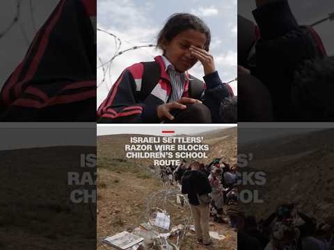 Israeli settlers’ razor wire blocks children’s school route