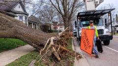 From tornadoes to blizzards, severe weather batters parts of the US. 7 hours ago. Brandon Drenon. Tornadoes, thunderstorms and blizzard conditions are forecast to pummel parts of the eastern US.. More than 34 million people were under tornado watches from Florida to New Jersey.. Nearly 3ft (0.9m) of snow has fallen in Minnesota, Wisconsin and northern Michigan since the storm began this weekend, according to the National Weather Service (NWS).. The bulk of the storm is expected to churn off the east coast into the Atlantic by Tuesday, with abnormally cold weather to follow in its wake.. Over 11 million people are under blizzard warnings, and another four million are under winter storm warnings, according to the BBC’s US partner CBS.. By Monday evening, nearly 4,600 flights had been cancelled and almost 11,300 delayed, according to flightaware.com.. The bulk of the flight cancellations and delays were at Chicago’s O’Hare International airport and LaGuardia in New York.. More than 406,000 customers were without power, a third of them in Michigan, followed by Virginia and North Carolina.. In Minnesota, over 25in (63.5cm) of snow fell in parts of the state by Monday morning. More snow and strong winds were forecast.. “Whiteout conditions are expected and will make travel treacherous and potentially life-threatening,” the NWS said.. Minnesota Governor Tim Walz has authorised the state’s National Guard to support emergency operations, CBS said.. Severe thunderstorms were expected in parts of North Carolina, South Carolina and West Virginia, where NWS has predicted hail and “a tornado or two possible”.. Tornado warnings were issued between 10:00 and 11:00 local time in parts of northern Virginia. A similar warning was issued for parts of the Florida panhandle.. In North Carolina, where wind gusts on Monday were predicted to exceed 74mph (119km/h), Governor Josh Stein encouraged residents to enable emergency alerts on their phones.. Schools in Raleigh and Chapel Hill, North Carolina, were closed on Monday. Schools were also closed in some districts in Wisconsin and Minnesota.. Getty Images. In Washington DC, park officials announced that the Washington Monument will close early at 13:00 local time as the storm drew closer.. “Beware of possible flash flooding, standing water, strong wind, lightning and hail,” the Park Police said in a statement on X.. A tornado watch was issued for the US capital.. Canadians were also facing severe weather on Monday, particularly in central Ontario and south-western Quebec. Forecasters in the region predicted up to 20in of snow with wind speeds up to 49mph, warning of “near zero visibility” in some areas.. On the US west coast, an extreme heat watch was scheduled to go into effect for parts of southern California, Arizona and Nevada later this week.. Temperatures in southwest Arizona were expected to reach up to 109F (42C). Officials there warned of a “significant increase” in the chance of heat related illness.. On Wedne