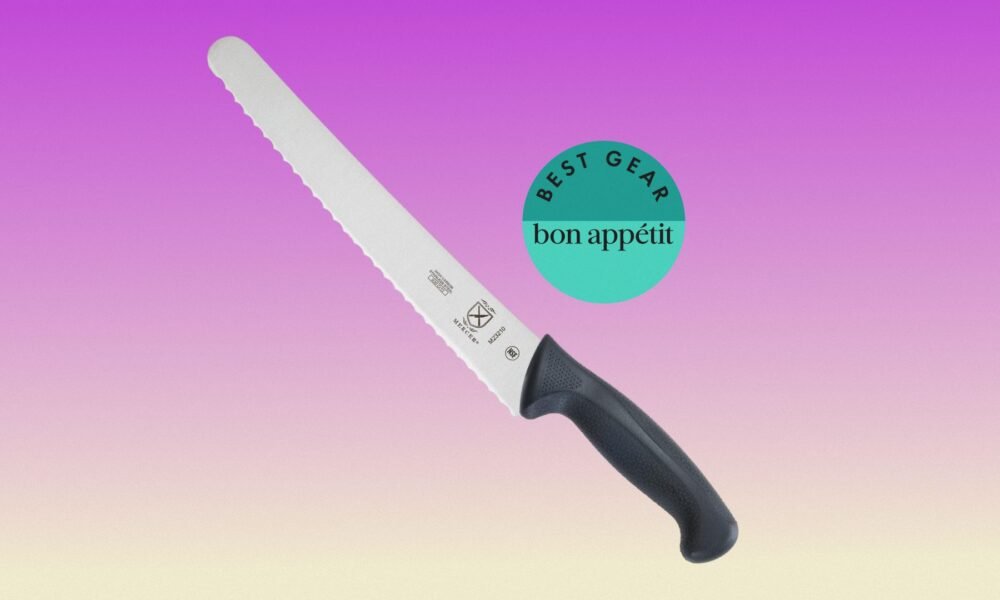 Bread knives are one of those kitchen tools where the expensive models get all the glory—and sometimes they deserve it. Our favorite overall bread knife costs close to $100 and glides through crusty sourdough like it’s nothing. But here’s the thing about serrated knives: the teeth do a lot of the work, which means a well-made budget option can punch well above its price. The real question isn’t whether you should splurge. It’s whether you even need to.. Our top pick. The best bread knife under $25: Mercer Culinary M23210 10″ Bread Knife, $17. After testing eight budget bread knives, one was a clear winner. The Mercer Culinary bread knife produced the cleanest slices, handled tomatoes effortlessly, and had the best handle we tested—grippy, secure, and comfortable in a way that cheaper knives rarely manage. It costs under $20 and feels like it shouldn’t.. In this article. How we tested. Our top pick. Other cheap bread knives we liked. Bread knives that were a cut below. The final takeaway. How we tested. I tested eight budget knives from well-known kitchen brands, each priced between $13 and $25, on the tasks that actually matter: slicing thick sourdough, cutting sandwich bread, and tackling tomatoes—the classic stress test for serration sharpness.. Our top pick: Mercer Culinary M23210 10” Bread Knife, $17. Mercer. Culinary M23210 10” Bread Knife. $17 $16 (6% off). Amazon. The best budget knife we tested, and it isn’t particularly close. From the first cut into a crusty sourdough loaf, the Mercer produced cleaner slices than anything else we tested. The 10-inch blade is long, sharp, and well-balanced—it glides through crust and crumb without tearing, and dispatches tomatoes into neat quarter-inch rounds with almost no pressure.. The handle is a standout, too: textured and rubbery in a way that feels genuinely grippy rather than just plastic-with-ridges. It’s the only knife we tested that felt fully secure even with slightly damp hands. At under $20, it performs like it should cost twice as much—and it’s the one we’d reach for every time.. What we love: Cleanest cuts of the group; effortless on tomatoes; long, balanced blade; superior grip.