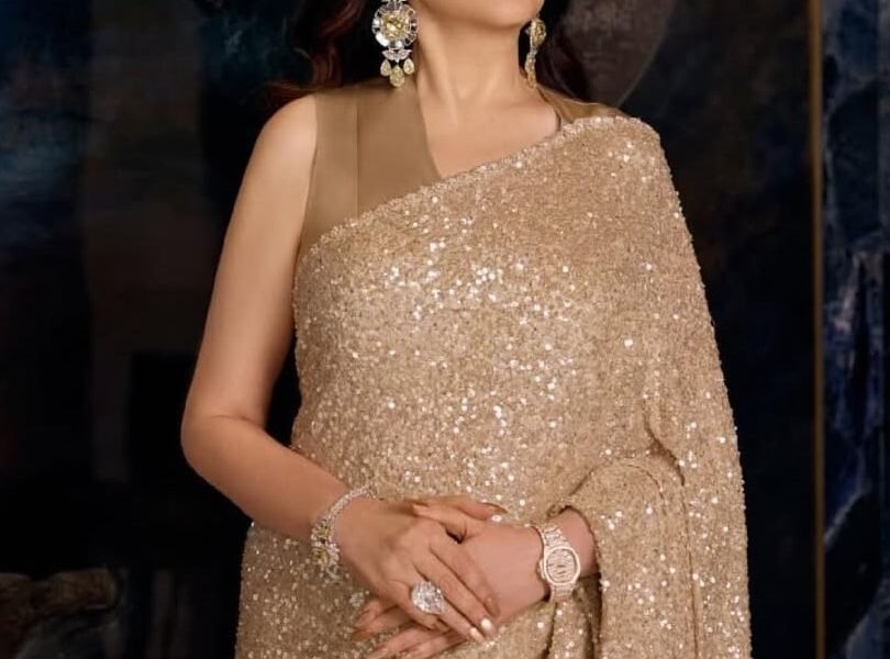 Over the weekend, Nita Ambani attended the 2026 Screen Awards in Mumbai and presented Ranveer Singh with the Best Actor award. For the ceremony, she chose Sabyasachi’s Akashtara sari, a house signature from the designer’s Summer 2020 collection.. Crafted in glittering champagne gold, the ensemble is entirely hand-embroidered with sequins, creating a rich, textural surface that resembles a sandy desertscape. The blouse was simple, in a matching muted gold with a satin-like finish, keeping the silhouette clean. Ambani paired it with a micro bag from Chanel’s Fall/Winter 2025 runway, a singular oversized pearl with a circular metal handle, which added a sculptural, almost whimsical touch.. True to form, she didn’t hold back with the jewellery: statement earrings set with white and yellow diamonds, a matching bracelet, and a large pear-shaped solitaire ring. On her wrist, she also wore a diamond-pavé Patek Philippe Nautilus watch.. Her hair was left natural, with soft waves framing her face. She had defined eyes and a pinkish nude lip on a clean base.. Instagram.com/stylebyami
