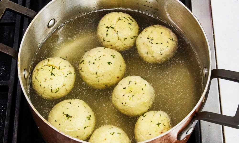 This matzo ball recipe proves you don’t need seltzer, baking powder, egg whites, or even a delicate touch to get great results. Eggs, matzo meal, broth, and schmaltz come together to produce tender, reliably fluffy dumplings.. Schmaltz (chicken fat) adds rich savoriness and that familiar comforting flavor, while dill and black pepper bring freshness and bite. When cookbook author Molly Baz was developing the recipe, she learned that giving the matzo ball mixture an adequate rest in the fridge and gently simmering the shaped dumplings were the keys to light, perfectly puffed matzo balls—no gimmicks, no tricks. Don’t worry about handling the mixture too much either; rolling the balls firmly into smooth spheres won’t make them dense.. This recipe was developed to go with BA’s Best Matzo Ball Soup.. Why do I need to chill the mixture? Resting the mixture for at least 35 minutes allows the matzo meal to absorb the liquid. The mixture will seem loose at first, but will firm up as it hydrates, helping the balls hold their shape and cook up light rather than dense.. Why cook matzo balls in salted water instead of soup? Matzo balls absorb the liquid they cook in like sponges. Simmering them in well-seasoned water gives them flavor while keeping your soup broth clear.. How salty should the cooking water be? Think pasta water: salty but not briny. If you’re sensitive to salt, you can reduce the amount slightly.. Why didn’t my matzo balls puff up? They need a gentle simmer and enough time to cook through. A rolling boil can toughen them—or worse, cause them to disintegrate. Keep the pot covered and cook for the full 30–40 minutes; removing the matzo balls early can leave the centers dense.. Can I substitute schmaltz? Yes. Neutral oil or light olive oil works if you don’t have schmaltz, though you’ll lose some of the classic chicken-y flavor. You could also swap in beef tallow for a meatier-tasting dumpling (best with beef broth).