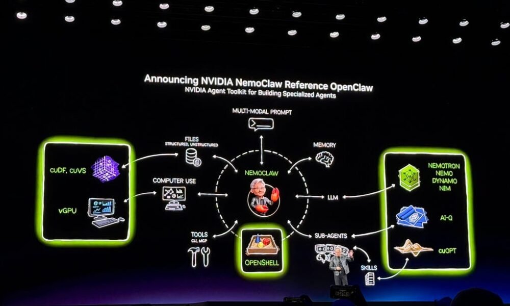 Nvidia wants to simplify the creation and management of your own AI agent. The company unwrapped NemoClaw on Monday during its GTC Conference keynote, a reference stack for the OpenClaw agent platform. NemoClaw is Nvidia’s specialized infrastructure layer that makes it easier to set up and run AI agents with an added security layer, according to the company.. OpenClaw has taken the AI world by storm in recent months, with the term “claw” itself becoming the latest in AI lingo. CEO Jensen Huang described OpenClaw as “an operating system for personal AI,” allowing you to create autonomous AI assistants, or claws, capable of performing actions without continuous instruction.. These agents, powered by large language models like Claude, can offload simple tasks and connect to tools like messaging and email, opening a wide world of possibilities and functions.. Watch this: Highlights From Nvidia’s GTC 2026 Keynote With Jensen Huang. With NemoClaw, setup happens in a single command that installs the necessary components and software to create agents. The reference stack also includes a layer of trust, creating an isolated sandbox that uses policy-based guardrails so your AI assistant handles your data securely. This also includes introducing a privacy router, which the company claims allows you to connect your agent to cloud tools safely.. To continue learning, always-on agents require constant computing power to complete tasks. NemoClaw was built with this in mind.. Agents are optimized to run 24-7 on any dedicated platform, including Nvidia’s own RTX PCs, and other laptops and workstations. Dell also introduced a new NemoClaw supercomputer, the Dell Pro Max with GB10 and GB300. The most popular hardware for OpenClaw enthusiasts so far has been the Mac Mini, but manufacturers are starting to develop computers specific for this use.