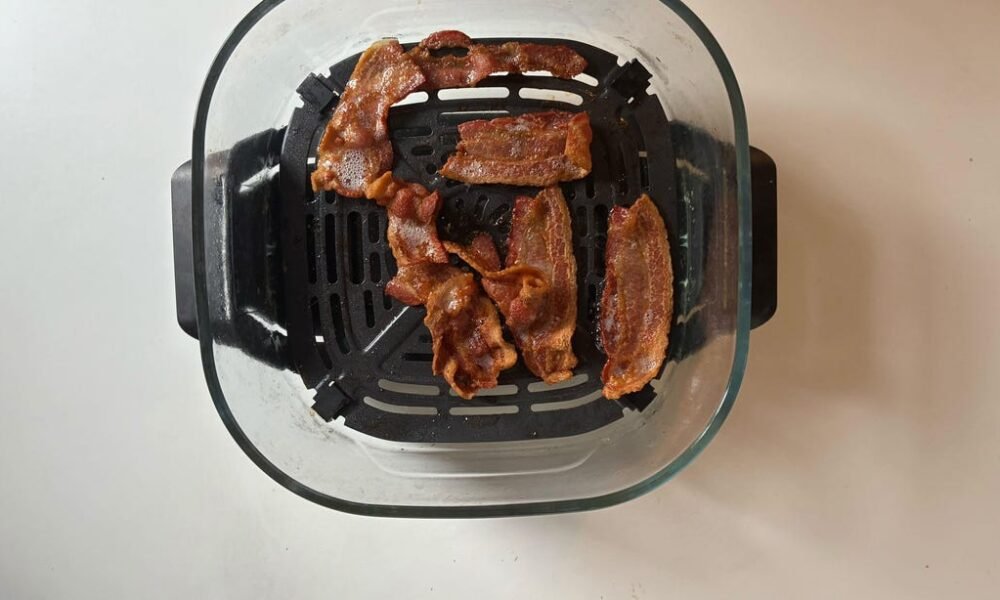 I love cooking hacks and shortcuts, but only when they don’t sacrifice the final result. Microwave-poached eggs and reverse-seared steak are two such examples. More recently, I discovered a bacon-making trick, and now it’s the only way I’ll cook the stuff.. Bacon isn’t difficult to cook, thanks to all that delicious fat running through it. It is, however, messy — particularly when cooked on a stovetop, where grease splatters onto anything within a few feet, including the person cooking it.. Only one kitchen gadget makes perfect strips in under 8 minutes. David Watsky/CNET. I’d previously switched from the stovetop to an oven approach, but the rate at which I use my air fryer had me wondering if this might be the key to fast and easy bacon.. To find out, I ran a test comparing bacon made in the frying pan, the oven and the air fryer. My aim was simple: see which kitchen tool makes the crispiest strips with the least amount of work and cleanup.. I also gave the microwave a chance: While it technically works, the bacon often emerged dry or rubbery, so I took it out of the running.. Here’s how the three main contenders fared.. Frying pan. Cooking time: 10 minutes. Hassle: 8/10. How much bacon: 7-8 strips. I grew up on pan-fried bacon but my test revealed there’s a better way. Mike Mackinven/Getty Images. This is the way I grew up cooking bacon and it’s perfectly fine. There isn’t much skill needed to fry bacon in a pan, though just about every batch I’ve ever made sends a healthy splatter over the stove. In more unfortunate instances, that infernal grease lands directly on my skin or clothes, which presents two different but equally aggravating problems.. Pan-fried bacon soaks up a ton of grease, which is why many turn to paper towels to drain it after cooking. Pan-frying these strips of pork belly also tends to curl them into little bacon balls. While that has no impact on the taste, it can make for a suboptimal presentation.. I can feel the splatter bombs just looking at this photo. David Watsky/CNET. Another drawback of cooking bacon in the frying pan is its limited capacity. A 10-in frying pan can hold only about 7 average-sized strips of bacon at a time, although you can add more as they shrink during cooking.. Then there’s the matter of cleaning said pan after use. It’s not recommended to put most cookware in the dishwasher, so you’ll have to manage that grease-soaked surface yourself.. Oven. Cooking time: 18 minutes. Hassle: 6/10. How much bacon: 10-12 strips. Oven bacon is best for cooking large batches. CNET. While it involves more prep, oven bacon has clear advantages over pan-frying. For one, there is little concern about capacity, as a standard cookie sheet or baking tray can hold nearly a full package of bacon, making the oven ideal for cooking large quantities.. Using a baking tray and rack allows the grease to drip down below. That makes for crispier, less greasy results, but it does present a headache when it’s time to clean. Cookie